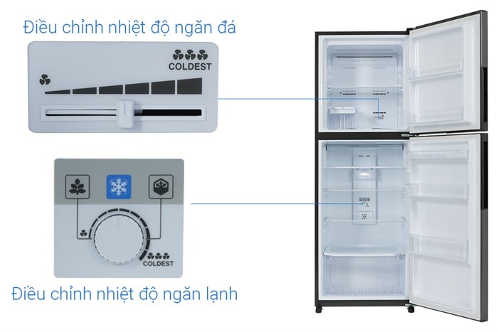 - Bảng điều khiển ở ngăn đá được thiết kế dạng nút trượt và ngăn lạnh được thiết kế dạng núm xoay, tất cả đều giúp cho người sử dụng dễ dàng điều khiển.
