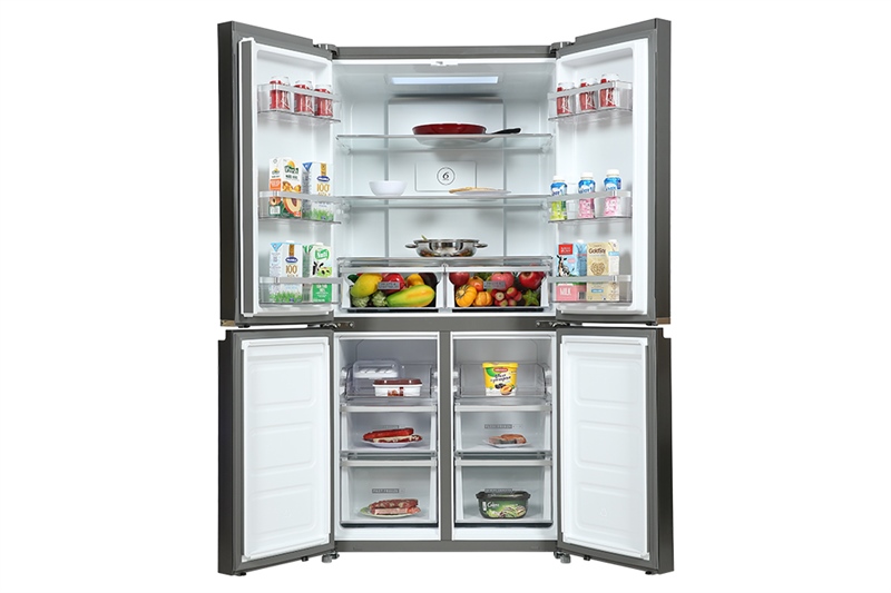 - Thiết kế multidoor - 4 cánh hiện đại, cùng dung tích lớn 594 lít dễ dàng sắp xếp, phân chia thực phẩm ở những khu vực khác nhau bên trong tủ.