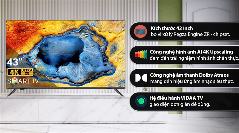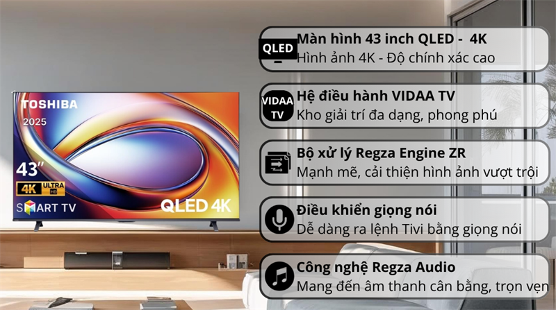 Smart Tivi QLED Toshiba AI 4K 43 inch 43M450RP 2025 - Việt Nam