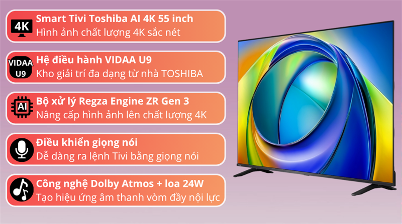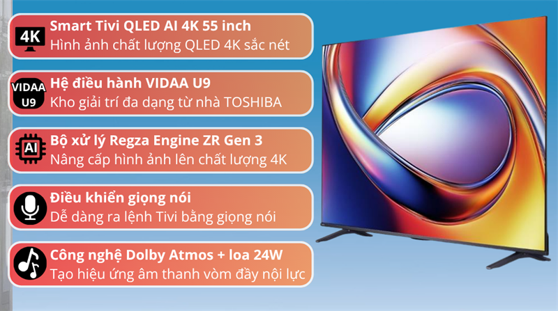Smart Tivi QLED Toshiba AI 4K 55 inch 55M450RP 2025 - VIỆT NAM